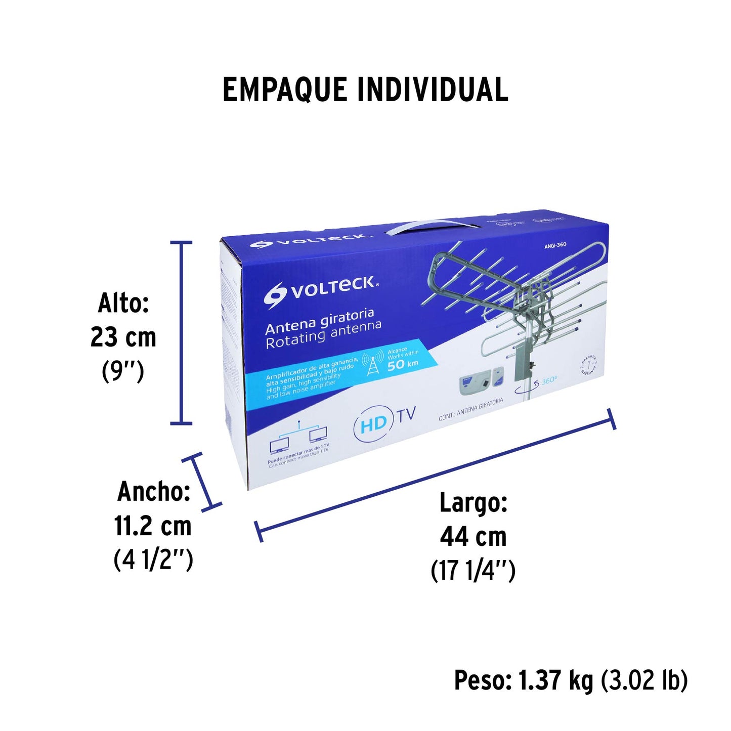 Antena aérea para TV HD, giratoria 360° con control, Volteck | ANGI-360 | 48115