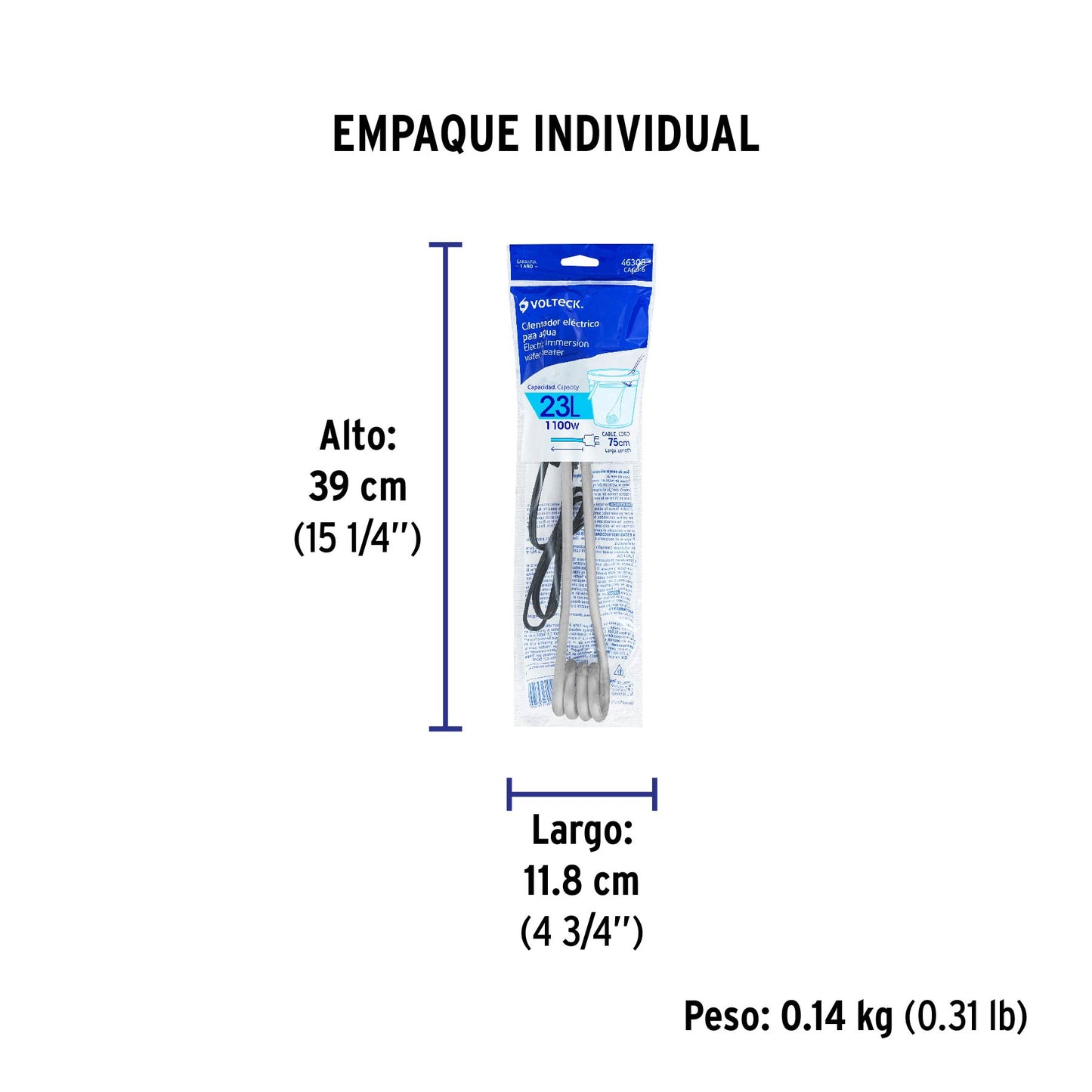 Calentador de inmersión p/agua #6 de 23 L, 1100 W, Volteck | CAGU-6 | 46308