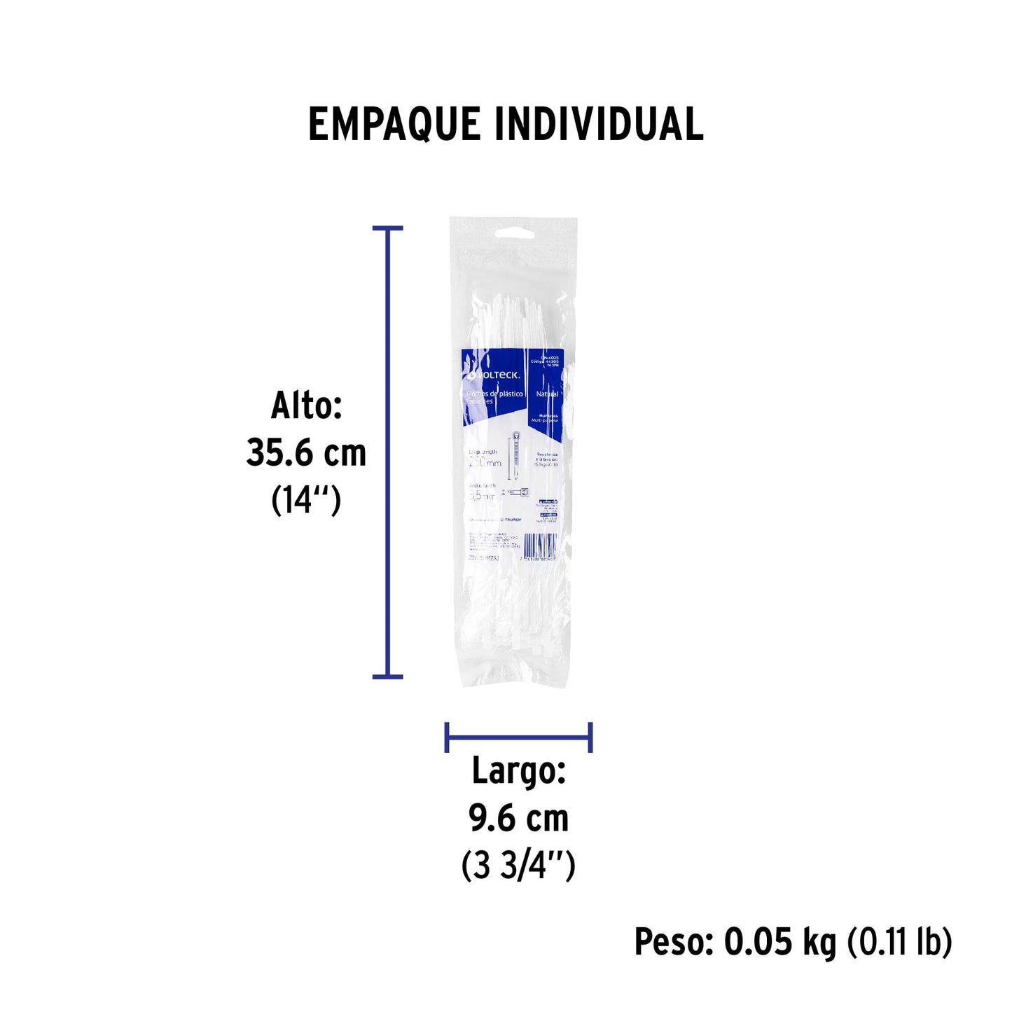 La Bolsa con 50 Cinchos Plásticos de 40 lb, 250x3.5 mm Naturales, clave CIN-4025 de VOLTECK, código 44305, es una solución robusta y económica para necesidades de fijación que requieren mayor resistencia. Fabricados en nylon de alta calidad, estos cinchos ofrecen una resistencia a la tensión de 40 libras (18.14 kg) y una excelente durabilidad, ideales para uso en interiores y exteriores. Su color natural se integra discretamente en cualquier entorno.