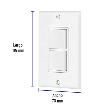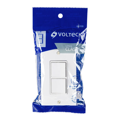 La Placa Armada con 2 Interruptores Sencillos Volteck PA-APDO-CL, integrada en la atemporal línea Classic, es una solución eléctrica funcional que permite controlar dos puntos de iluminación de manera independiente desde un único lugar. Su diseño con dos interruptores de palanca o botón (dependiendo del modelo específico dentro de la línea) ofrece un control intuitivo y tradicional, optimizando el espacio en la pared y manteniendo una estética limpia y armoniosa en cualquier ambiente.