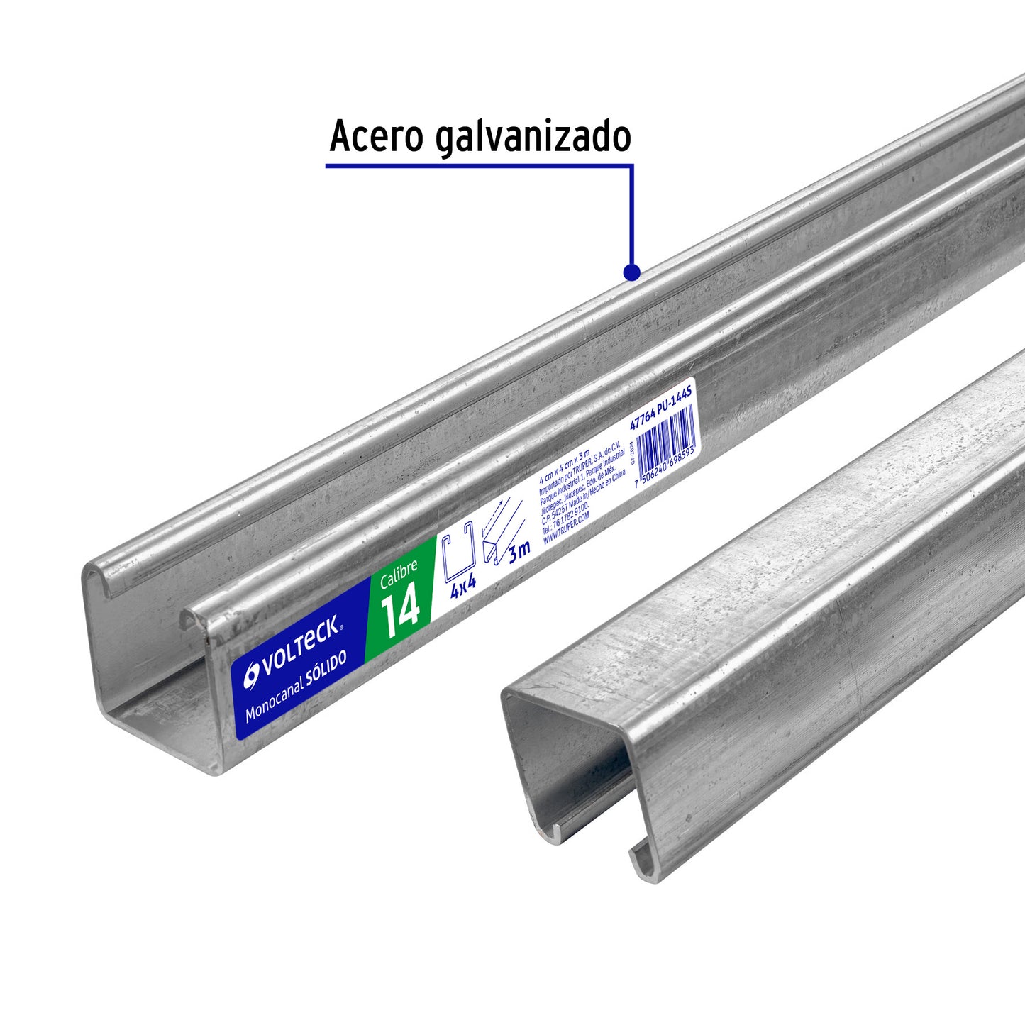 Perfil monocanal sólido de 3 m, 4 x 4 cm cal. 14, VOLTECK | PU-144S | 47764